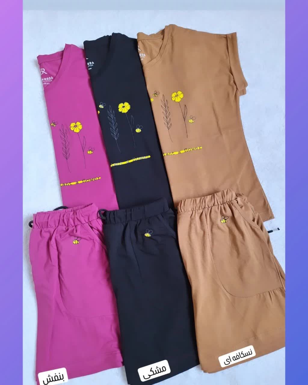 ست تیشرت و شلوارک گل و زنبور، انتخابی شیک و راحت برای روزهای گرم شما! با طراحی شاداب و منحصر بهفرد، این ست از جنس باکیفیت و لطیف آماده است تا استایلی خاص و پرانرژی به شما ببخشد. ایدهآل برای دورهمیهای تابستانی و لحظات خاطرهانگیز. همین حالا خرید کنید و درخششی تازه به روزهای خود ببخشید! 🌼🐝