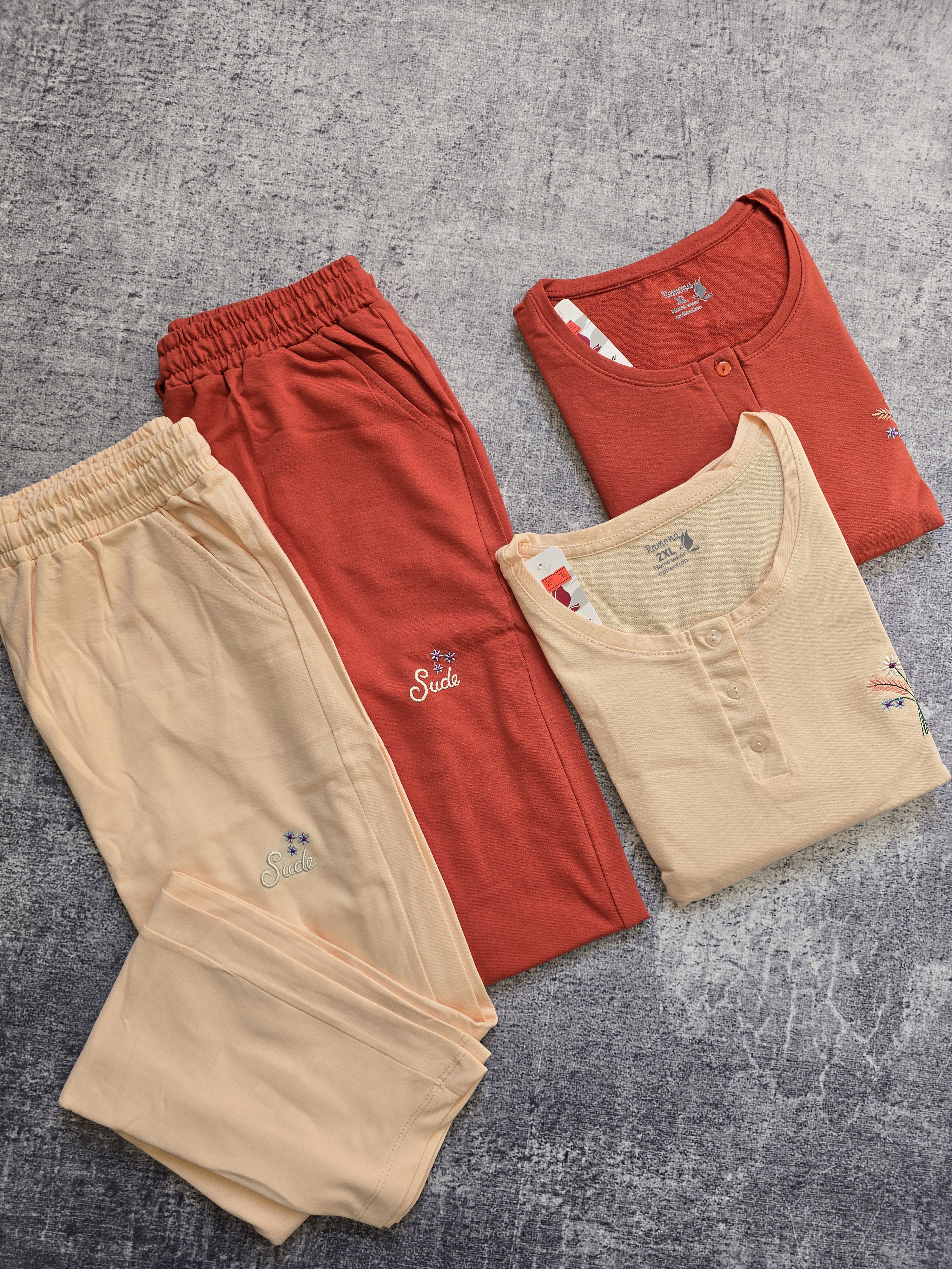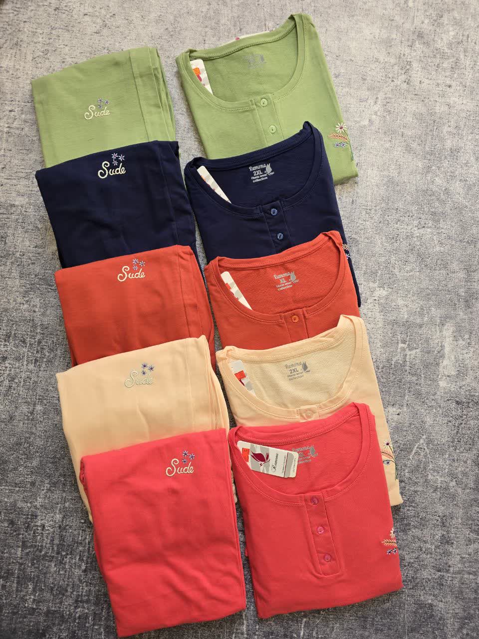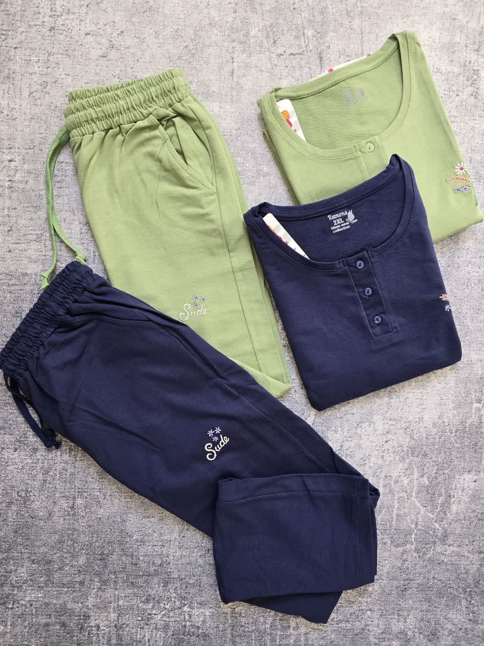 🔶️ سایز 2XL: دور سینه: 110 سانت/ قد بلوز: 72 سانت/ دور ران: 62 سانت/ قد شلوار: 102 سانت