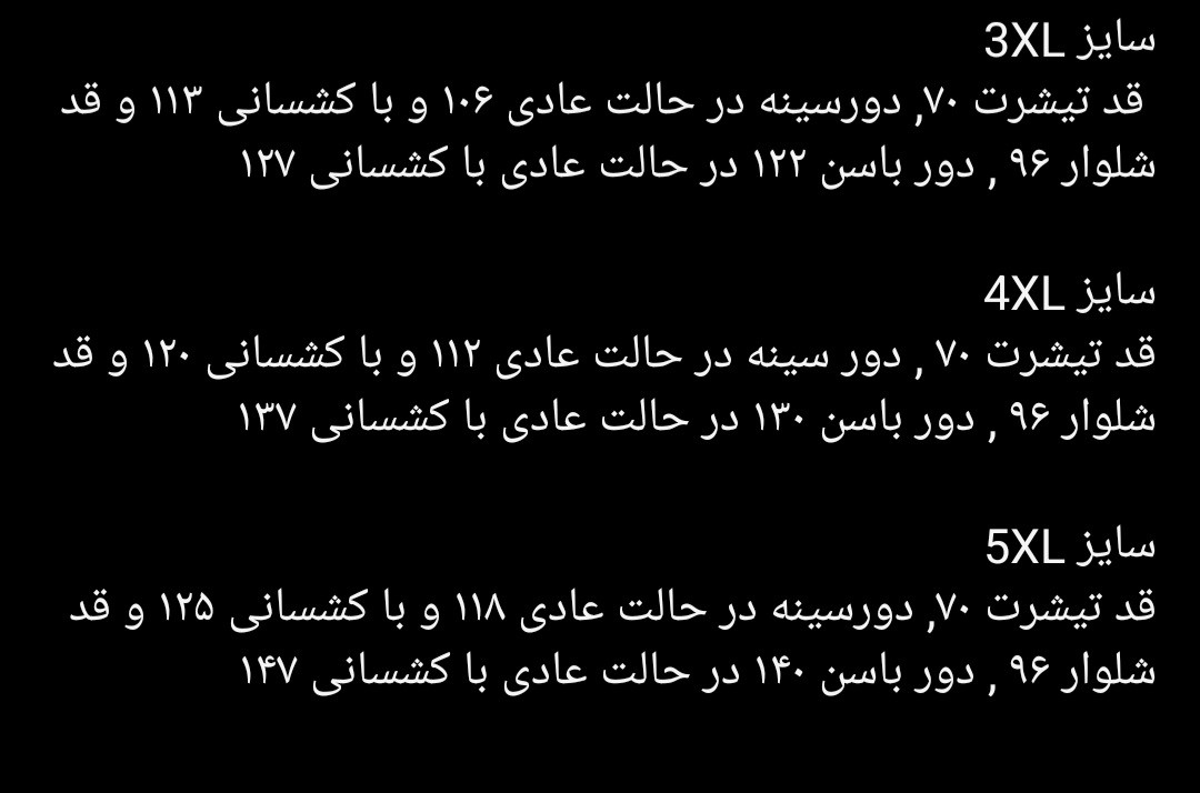 در تصاویر جدول سایزبندی را مشاهده کنید